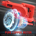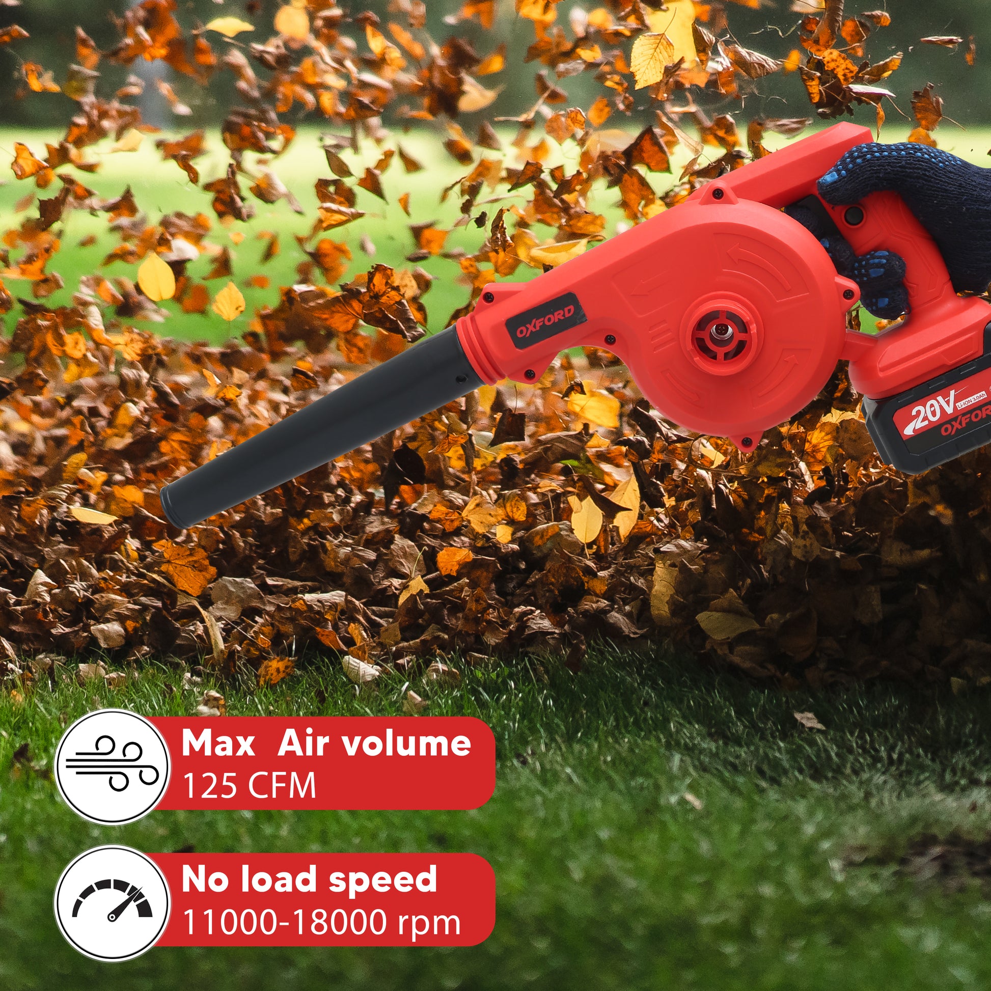 The O80 cordless leaf blower combines a powerful pure copper motor with an impressive airflow speed of 150 km/h and a no-load speed of 0-19,000 RPM. It features a 3Ah battery and a maximum air volume of 125 CFM for efficient performance. Enjoy customizable blowing with 6 variable speeds, and convenience with a self-lock button, fast charger, and two removable extension tubes for versatile use.
