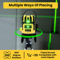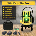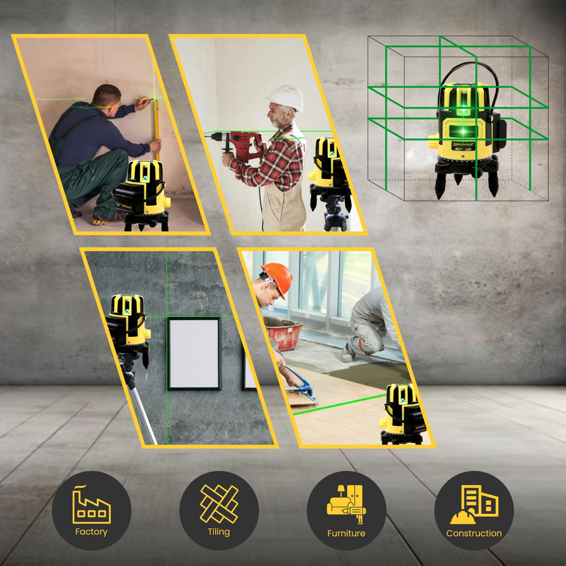 3D Line Laser Cross - 5-Line Self Leveling, Horizontal and Vertical Green Laser - Plastic Professional