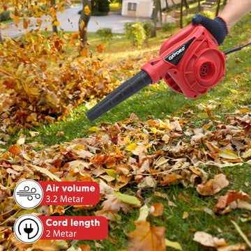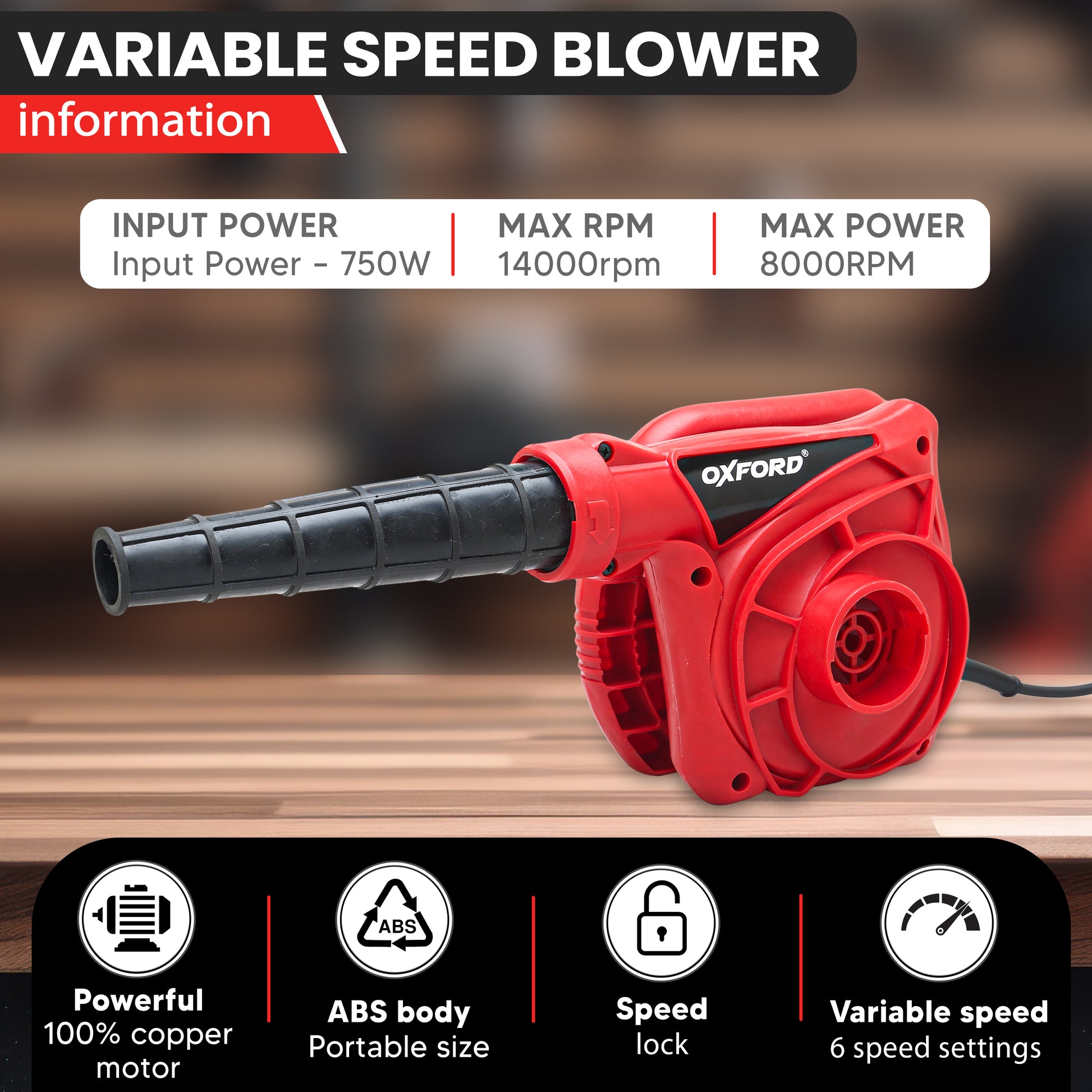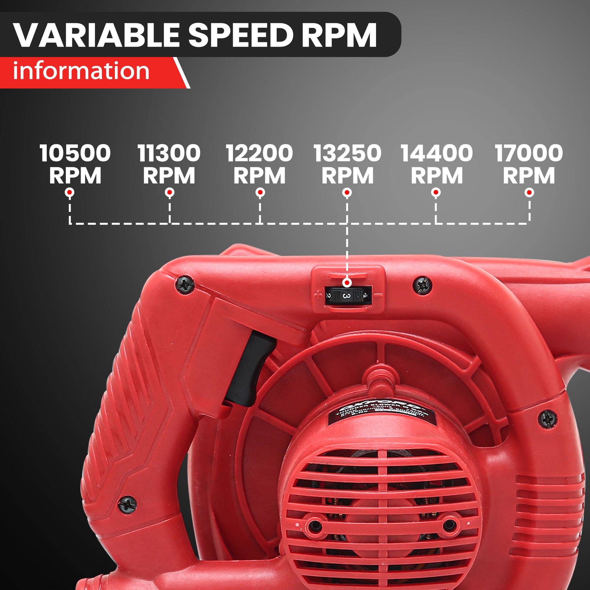 The O320 electric blower features a powerful 700W motor with a maximum RPM of 14000 and airflow reaching up to 222km/h. It includes a 10.5” flexible rubber hose and a 2-meter cord for versatile use. Built with an unbreakable ABS body and 100% copper components, it ensures durability and high performance. Proudly made in India, it also includes a speed lock for consistent operation.