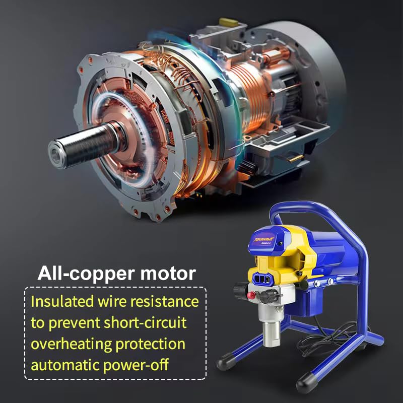 Equipped with a powerful 750W motor, the T1600 ensures a maximum flow rate of 1.2L/min and a high pressure of 3000PSI, providing smooth and even coverage for all your painting needs. Its durable copper armature and field coil guarantee long-lasting performance, making it a reliable choice for both DIY enthusiasts and professionals.