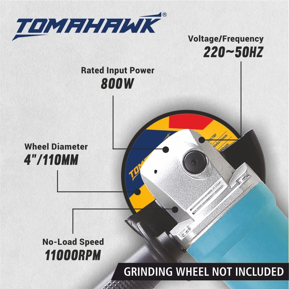 The Tomahawk® T16026 Corded Angle Grinder is a powerful and versatile tool designed for grinding, polishing, and cutting a variety of materials. With an 800W motor and 100% copper armature, it delivers a no-load speed of 1100 RPM, making it ideal for both professional and DIY projects. This angle grinder is perfect for metal cutting, metal grinding, and masonry cutting, handling tasks such as cutting or shaping concrete, stone, or brick with ease.