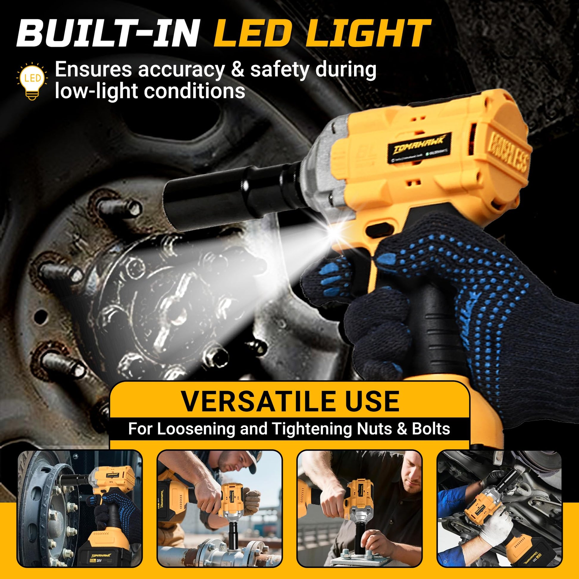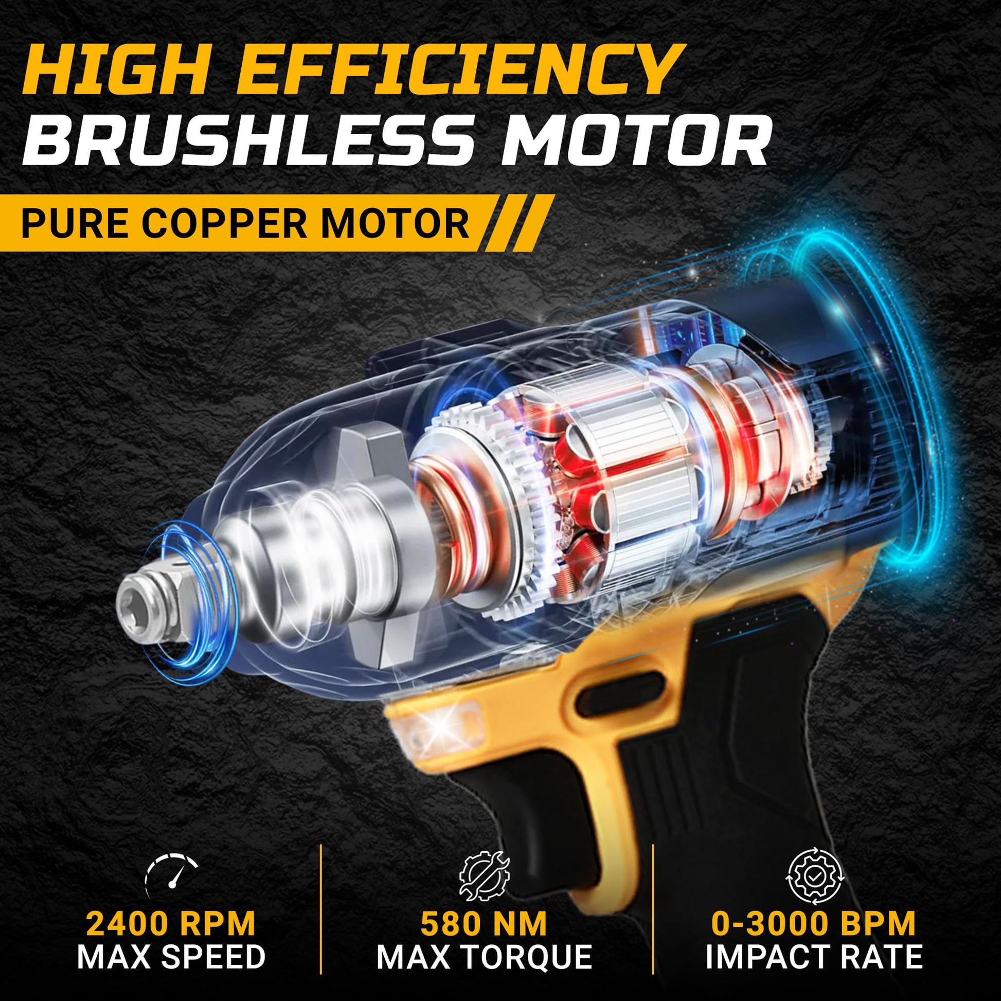 This impact wrench operates at 2300 RPM and offers an impressive 3300 impacts per minute (IPM), ensuring fast and effective results. Whether you're tightening or loosening bolts, the high-impact mechanism provides optimal power, making your work easier and faster. The brushless motor ensures smooth operation and reduces wear and tear, extending the tool's lifespan.