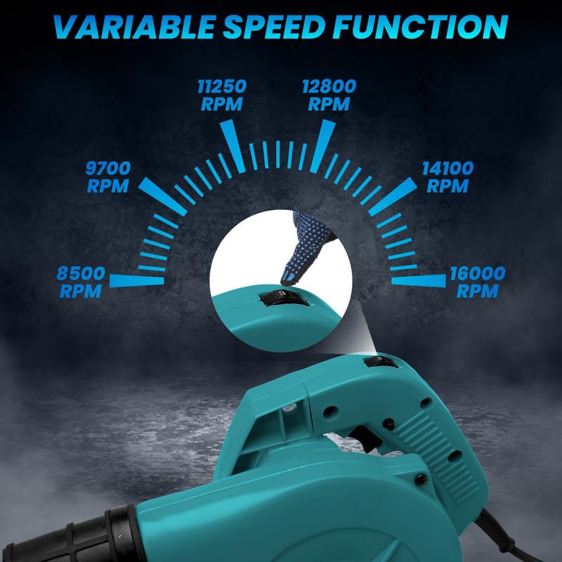 - The Tomahawk Cord Air Blower is a powerful and versatile tool, featuring a motor that provides robust performance for tasks like lawn care, snow blowing, and dust cleaning. With a high-speed operation of 16,500 RPM, it efficiently removes debris with its single-speed setting, simplifying usage. The ergonomic and lightweight handheld design ensures easy maneuverability and comfortable use over extended periods. Additionally, the blower's versatility extends to its use as a vacuum cleaner, making it suitable for a wide range of cleaning tasks. Equipped with a 1.8-meter cord, it offers ample reach, allowing users to cover larger areas without frequently changing power outlets, which is especially beneficial for both outdoor and large indoor spaces.