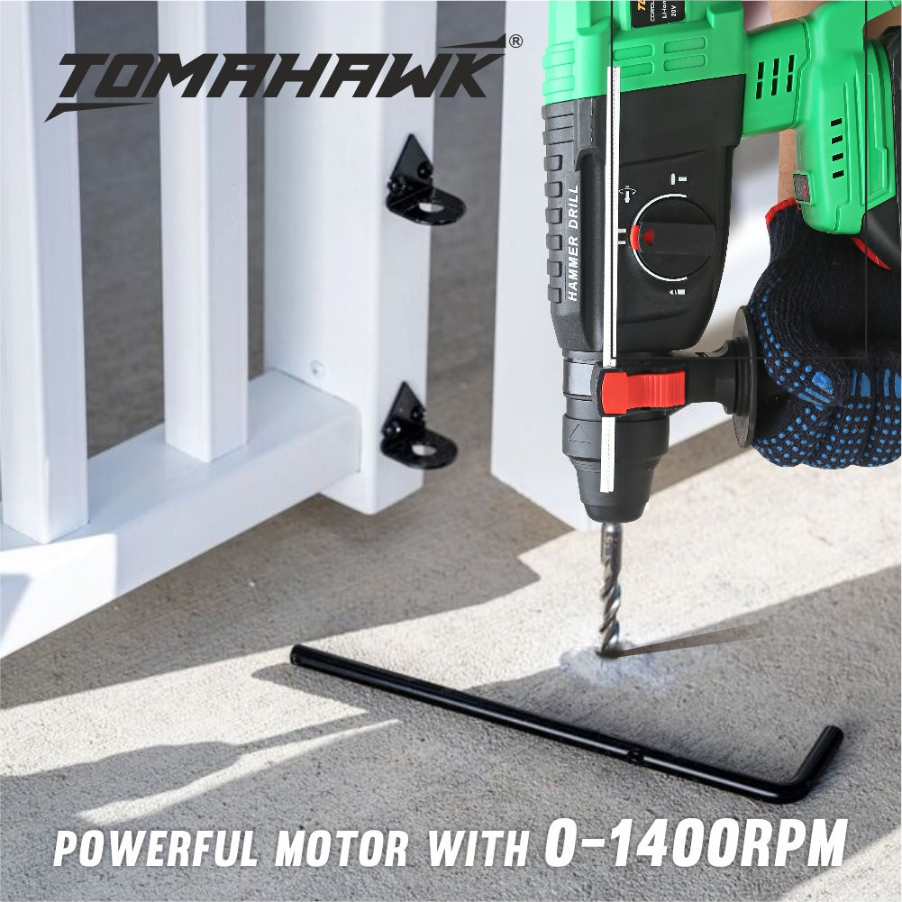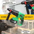The CRV226 26mm Cordless Rotary Hammer delivers powerful performance with a no-load speed of 0-1400rpm and impact rate of 0-4800IPM. Equipped with a brushless motor and 3 modes for drilling, hammering, and chiseling, it's ideal for a variety of tasks. It features a maximum drilling diameter of 26mm and a reversible function for added versatility. An LED indicator light ensures enhanced visibility in low-light conditions.