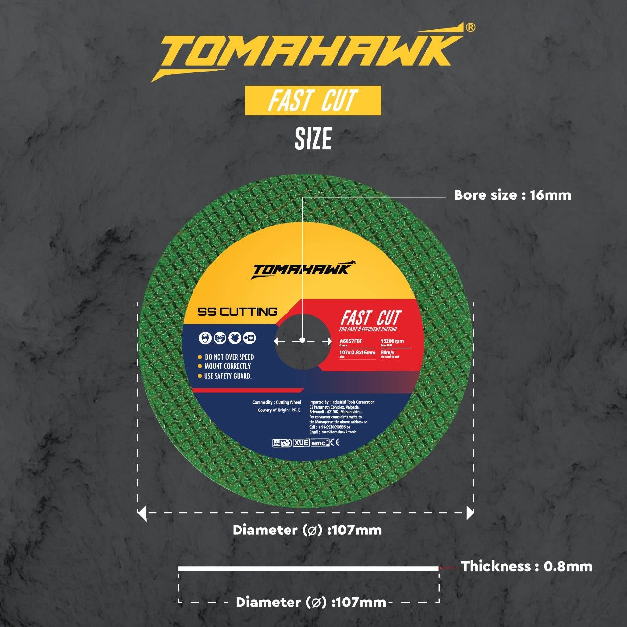 Experience powerful cutting performance with our Fast Cut 4-inch cutting wheel, designed for metal and stainless steel applications. Featuring a size of 107 x 1.0 x 16mm and a no-load speed of 80 m/s, it ensures maximum safety during use. Made with premium aluminum oxide grains and phenolic resin bond, this wheel delivers smooth, burr-free cuts. Reinforced with two precision-manufactured fiberglass nets, it guarantees high stability and is compatible with standard 4-inch angle grinders.