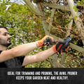 The TAP200 Anvil Pruner features a sharp, rust-resistant blade for clean and precise cuts. Its PTFE non-stick coating prevents sap buildup, ensuring smooth pruning every time. Equipped with a non-slip vinyl grip for comfort and control, plus a safety lock for secure storage. Durable and easy to use, it’s perfect for all your gardening needs.