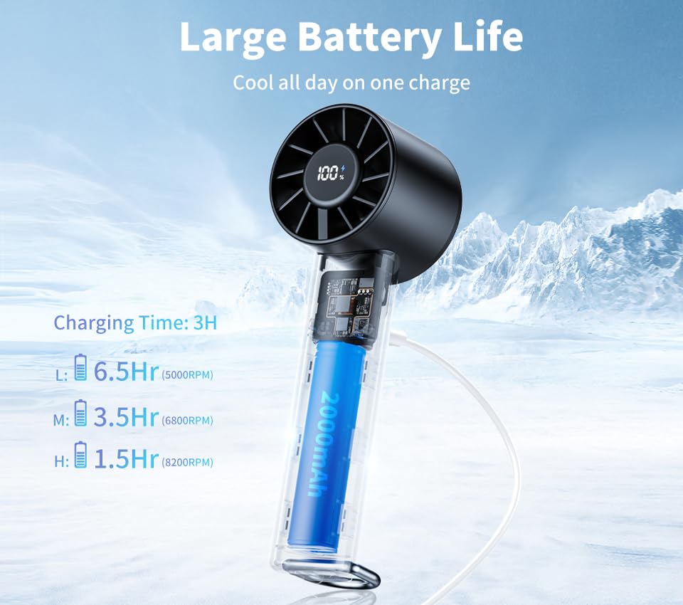 Portable Rechargeable Mini Fan - 2000mAh Battery, 3 Speed Modes, 5V/2A - HHDF-1475