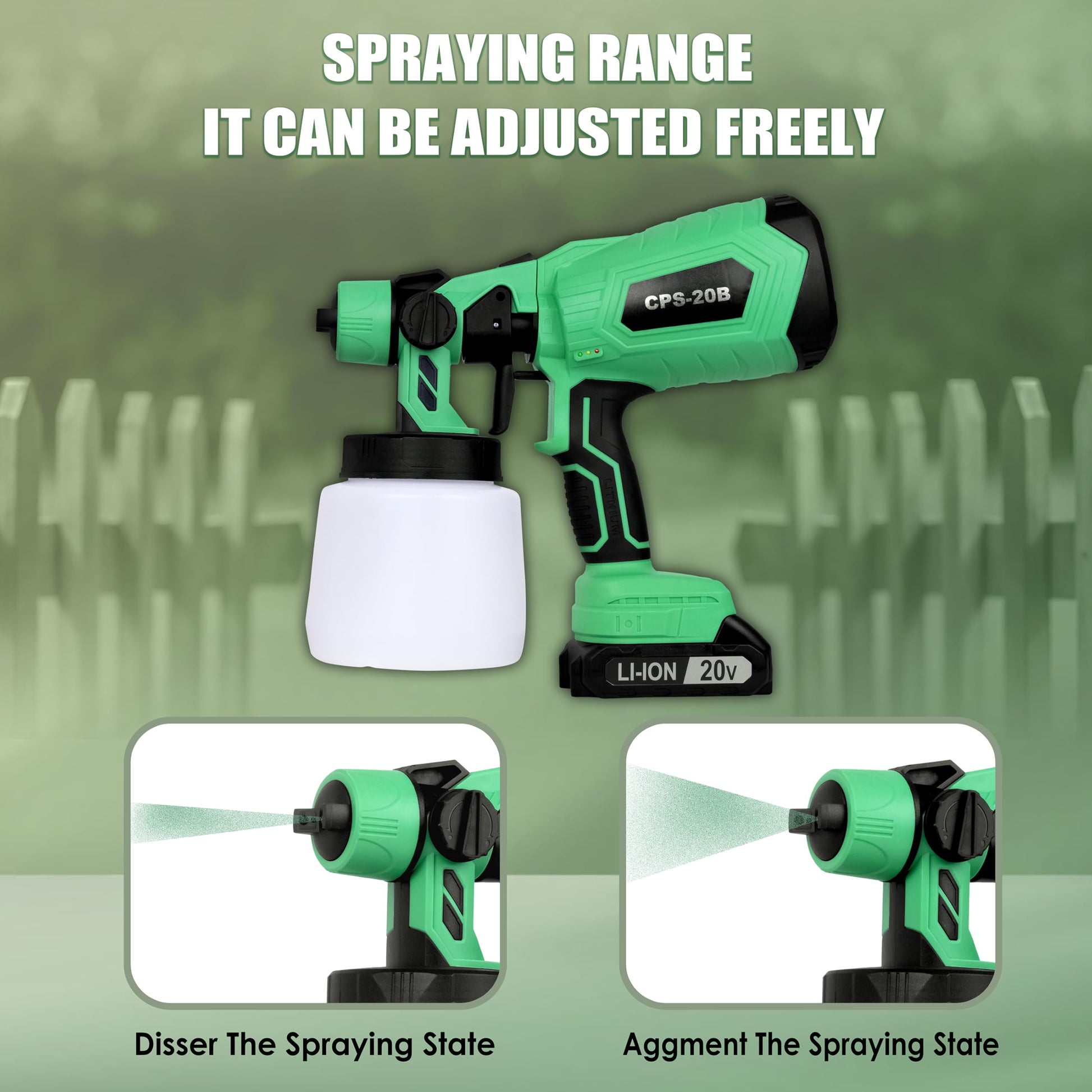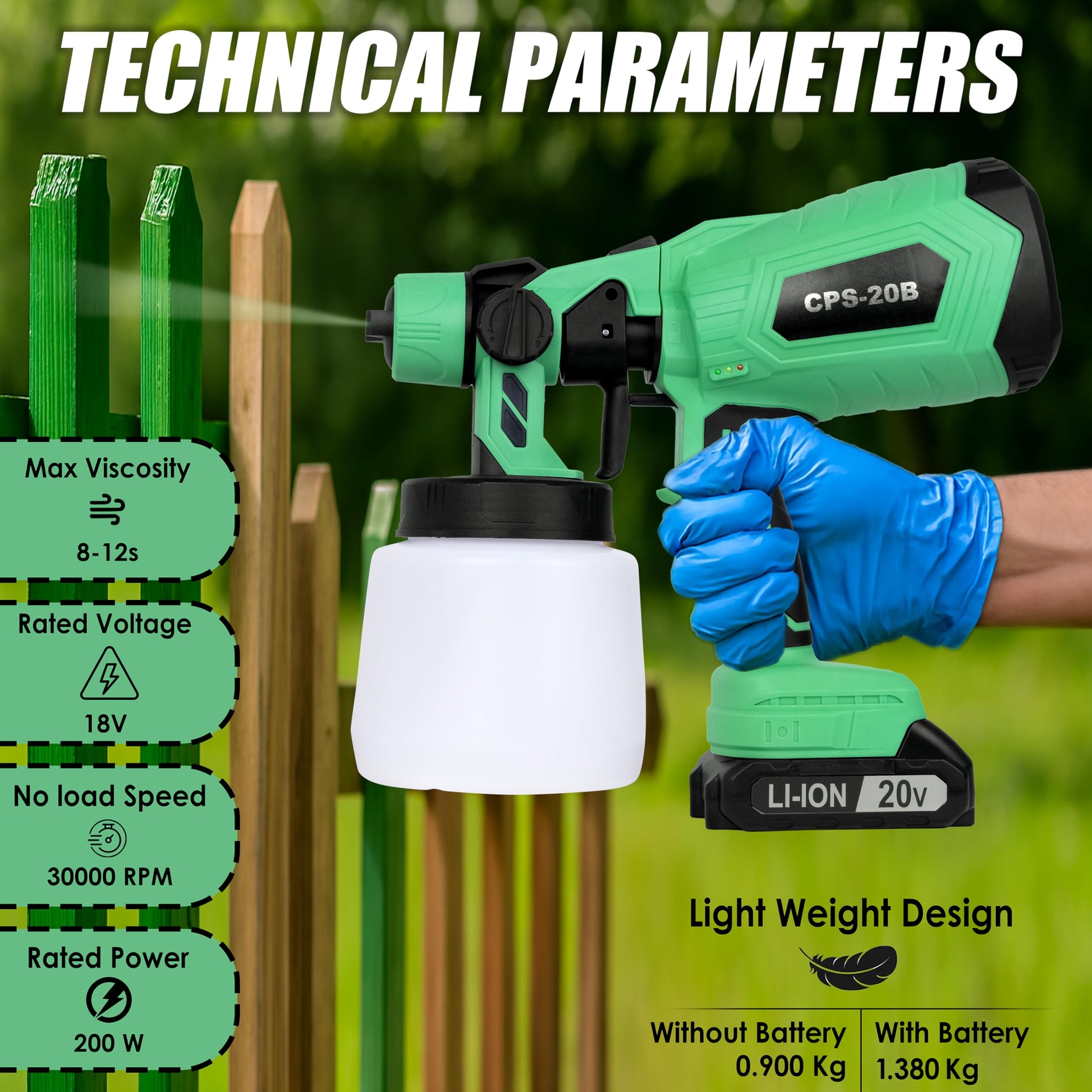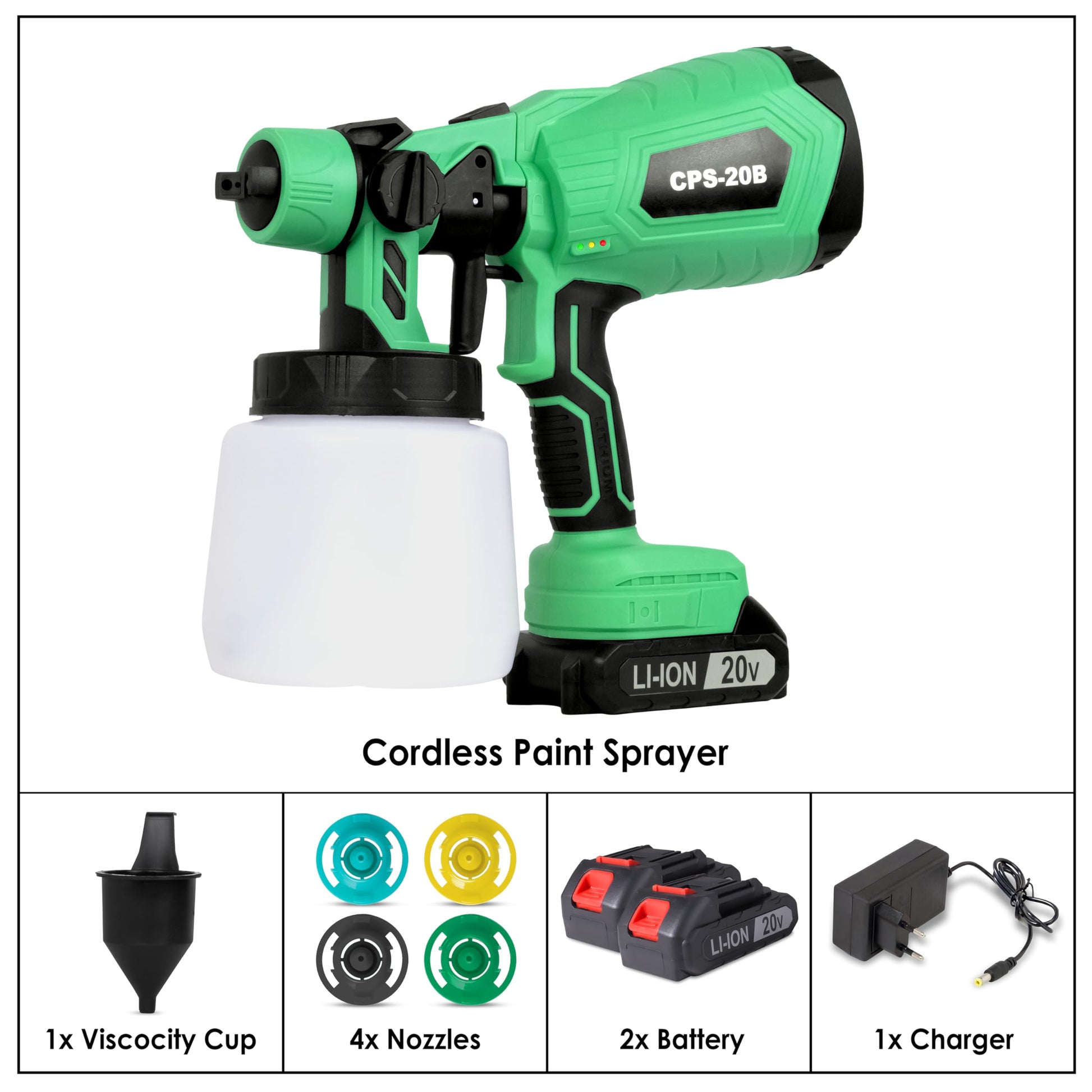 Power Paint Sprayer - 37000 RPM Noload Speed, 20V, 200cm-500cm Spraying Diameter, 2 X 1.5 Ah Batteries - CPS-2000