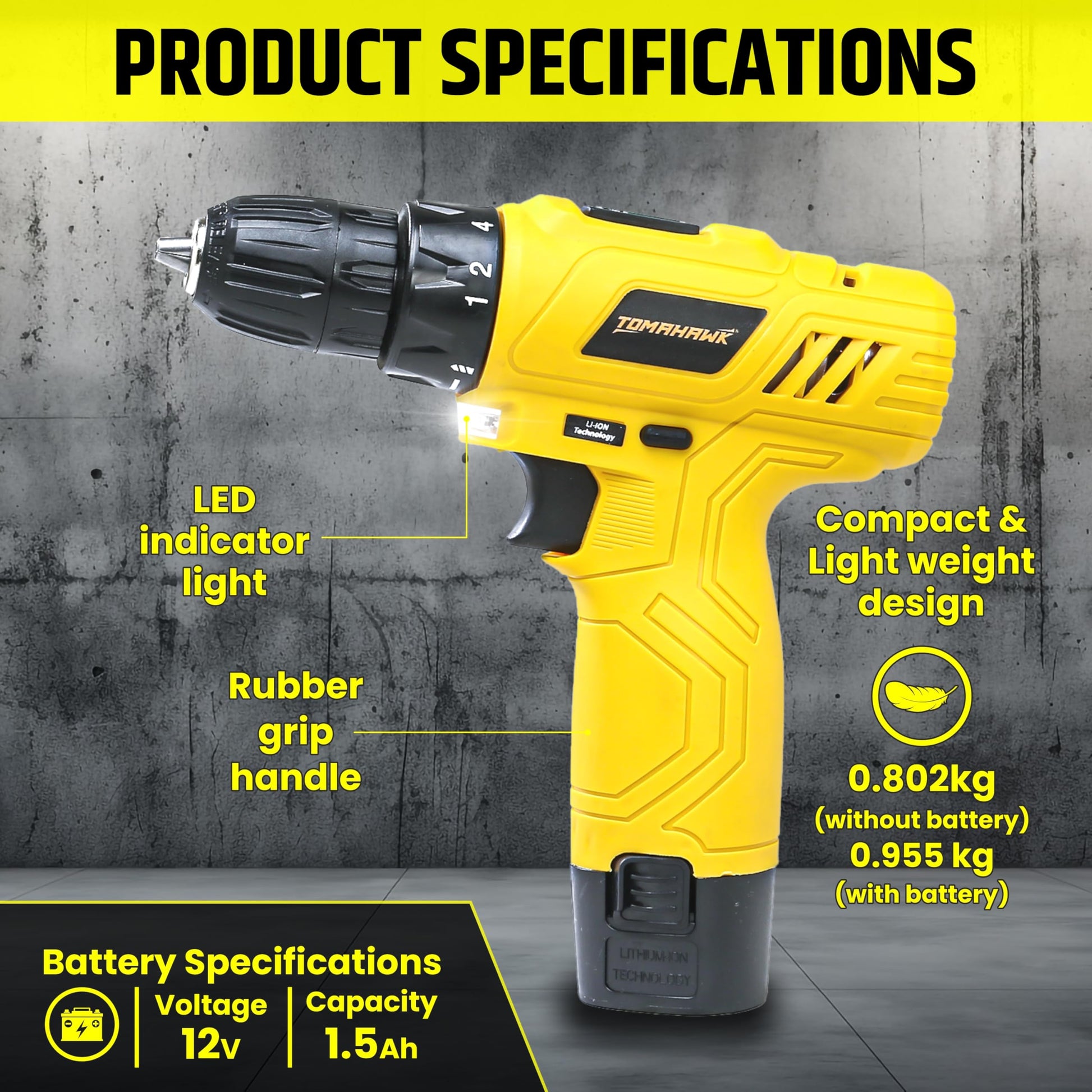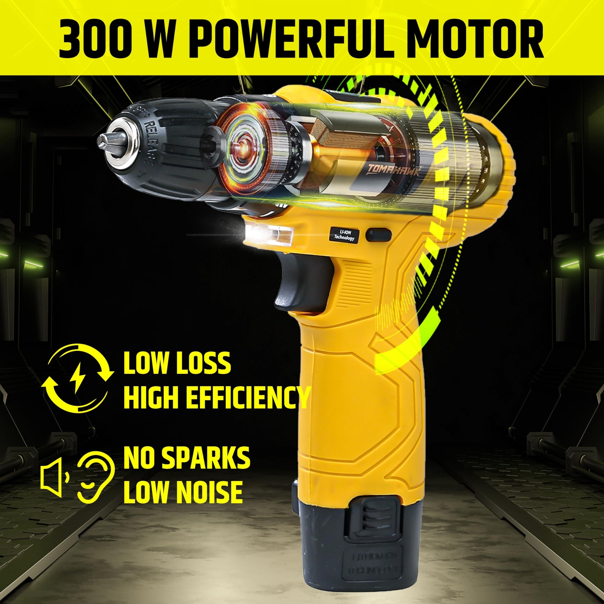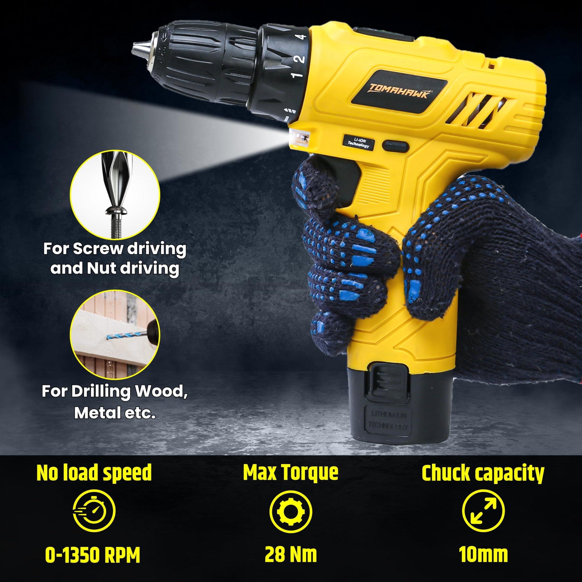 - The TOMAHAWK T SSS-3111 Cordless Screwdriver & Drill Set is engineered to deliver exceptional performance and convenience in a compact and lightweight design. With a powerful 300W motor and a no-load speed of 0-350/1350 RPM, this tool is well-suited for a variety of tasks including drilling into wood (up to 25mm), metal (up to 13mm), and masonry (up to 13mm).