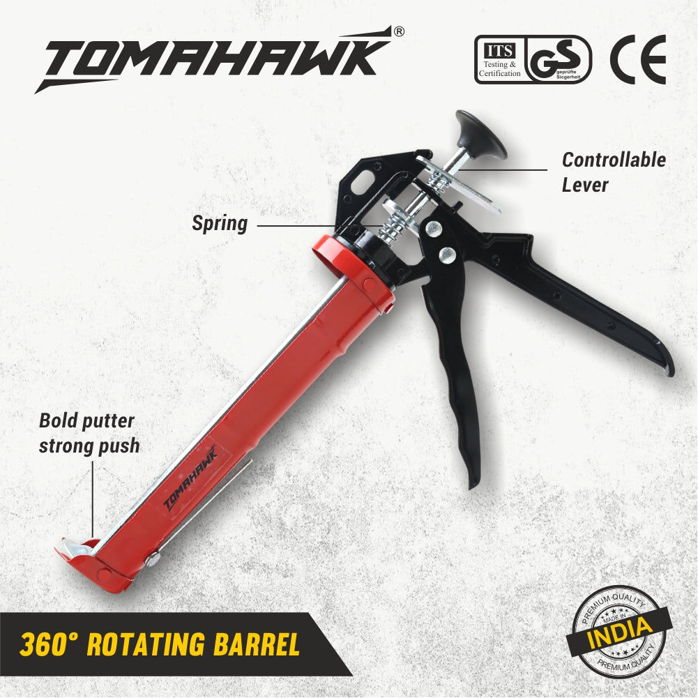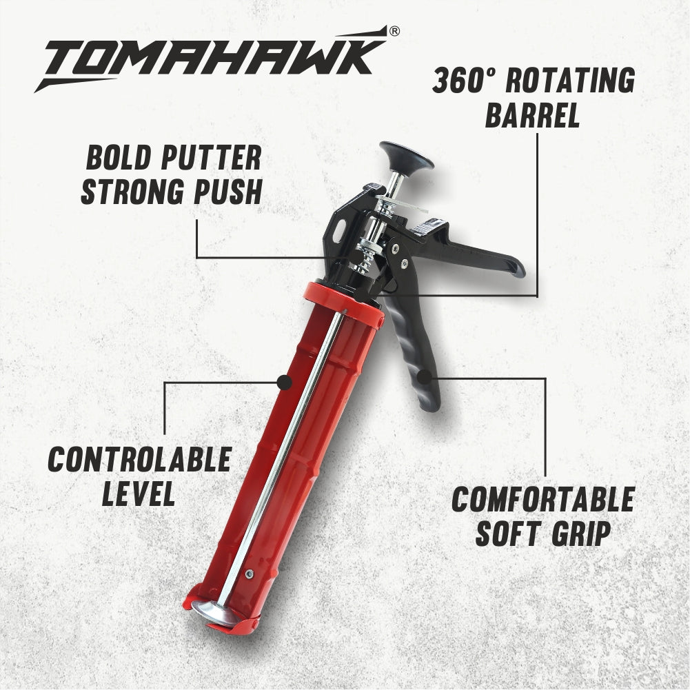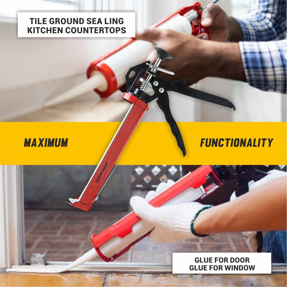 The TCG42 Caulking Gun is a high-quality tool, expertly crafted from premium ADC12 grade aluminum for durability and precision with a 12:1 thrust ratio for efficient application. Its 360° rotating barrel allows for versatile use, while the comfortable soft grip ensures ease and comfort during use. Perfect for any heavy-duty caulking project.